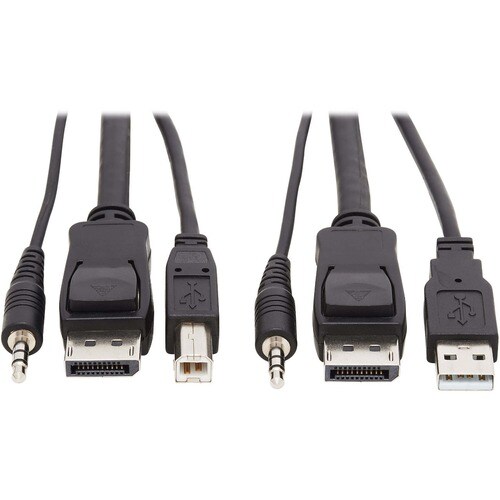 Tripp Lite by Eaton DisplayPort KVM Cable Kit, 3 in 1 - 4K DisplayPort, USB, 3.5 mm Audio (3xM/3xM), 4:4:4, 6 ft. (1.83 m), Black - 5.91 ft KVM Cable for KVM Switch, Computer - First End: 1 x Mini-phone Male Audio, First End: 1 x DisplayPort Male Digital Audio/Video, First End: 1 x Type A Male USB - Second End: 1 x Mini-phone Male Audio, Second End: 1 x DisplayPort Male Digital Audio/Video, Second End: 1 x Type B Male USB - 60 MB/s - Supports up to 3840 x 2160 - Gold Plated Contact - Black